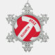 Dieses festliche Volleyball-Thema Zinnschneeflocke Schmuck kann mit ihrem Namen personalisiert werden und Weihnachten Jahr PLUS wählen Sie die Farbe für die nicht-weißen Volleyballfelder, hier in rot - von katz_d_zynes gezeigt