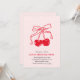 Machen Sie sich mit dieser Cherry auf Top Birthday Einladung fertig für eine süße Feier! Das Design mit zauberhaften Kirschen, Satin-Bögen und Retro-Flair in Rot und Rosa-Farbtönen lädt die Set zu einem knebeligen und fruchtigen Geburtstagsbash ein. Ideal für Party mit einer Touch von Vintagem Dessertshop-Charme! Einfach mit Ihren Party-Details anpassbar.