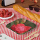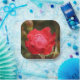 Eine rote rote Rose in voller Blüte. Wunderschön im Frühling und Sommer, zu Ostern, Müttertag, Gartenfest, Party; ein willkommener Wechsel der Jahreszeit für einen Wintergeburtstag oder Jahrestag. Suchen Sie nach den entsprechenden Papierbechern und anderen Party-Elementen.
