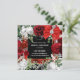 Ein wunderschöner, tiefroter Rahmen mit quadratischem Rahmen, mit goldfarbenen Imitaten umsäumt, mit zarten, weißen und tiefroten Aquarellfarben, die auf Eukalyptusblättern eingebettet sind. Ein hübscher, roter Satin-Bogen mit einem Imitat-Diamanteinlage erscheint über der rechten oberen Ecke und ein zartes Imitat silbernen Strang Erholungen darunter. Es gibt weiße Vorlagen auf schwarz für Ihre personalisierte Formulierung. Diese können für den Anzug eines Brautparty, einer Geburtstagsparty, eines besonderen Jubiläums oder einer Festweihnachtsfeier im Juli angepasst werden.
