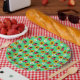 Rot-Schwarz-Ladybug mit Blume Pappteller
