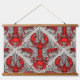 Rot, Schwarz und Elfenbein Wandteppich Mit Holzrahmen