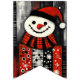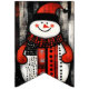 Ein charmantes Schneemannsbanner, das die Herzlichkeit der Volkskunst mit dem Flair der Pop-Kunst verbindet und spielerische Rot-, Schwarz- und Weißtöne aufweist. Die Schneemänner sind einfach, aber kühl, mit rustikalen Details und lebhaften Pop, die ein nostalgisches, heimeliges Ambiente geben und gleichzeitig einen modernen, auffälligen Look bewahren.