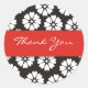 Ein ansprechender Dankeschön-Aufkleber mit weißen Blume auf schwarzem Hintergrund und roter Tafel.Die Dankeschön-Aufkleber können für jeden Anlaß verwendet werden, um Ihre Wertschätzung auszudrücken.