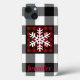Dieses moderne und trendige Karierte Buffalo Handy-Gehäuse verfügt über eine große weiße Zentralschneeflocke auf einem karierten, rot-schwarz-schwarzen Teil, sowie über eine anpassbare Textbox, die sich perfekt für ein Weihnachts- oder Wintergeschenk eignet.