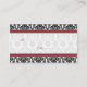 Schwarz-Weiß-Damast Hochzeitskarten oder Begleitkarten mit roten Akzenten. Verwenden Sie die Option Anpassen, um Änderungen an den Karten vorzunehmen, einschließlich Änderungen am Schriftart, der Farbe des Schriftartes oder der Hintergrundfarbe. Die Kartengröße beträgt 3,5" x 2,0", und alles, was benötigt wird, sind einige Platzkarten, wenn man will, sie zu benutzen. Diese Damast-Platzkarte wird auch für Hochzeiten, Geburtstage, Polterabend, Jubiläum oder vielleicht auch für Abschluss in der Oberstufe gut funktionieren. Beachten Sie, dass diese in Stapeln von mindestens 100 Stück bestellt werden.