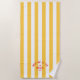 Meet Me In The Beach ist ein Badetuch perfekt für Ihren Strand.. gelbe Cabana Streifen mit individueller Beachroter Schrift. Personalisieren Sie sich mit den Details Ihrer Strandreise... Jahr, Strand und Ziel. Ideal für einen Strandausflug mit Familie oder Freunden oder einen Bachelorette im Beach Club oder als Memento für einen vergangen Ausflug. Matching Accessoires in der Meet Me in der Beach Yellow Cabana Stripe Collection.