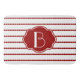 Modische hochrote Rot- u. weißeausbogen-gestreifte Badmatte, personifizieren mit Ihrer Initiale auf dem zusammenpassenden roten Aufkleber.
