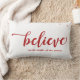 Stilvoll und Spaß, ist dieses Kissen die perfekte Weise, einen kleinen Feiertagsgeist Ihrem Zuhause hinzuzufügen. Kennzeichnet einen weißen Hintergrund mit roten Sternen, die umgebendes rotes Skript der Magie der Jahreszeit "glauben". Frohe Weihnachten.