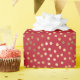 Ein Muster des nach dem Zufall zerstreuten Goldes, Imitat-Glitterpunkte auf Granatsrot trifft dieses Geschenkverpackungspapier eine moderne und AufTrend Wahl für die Feiertage oder jeden möglichen Tag.
