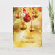 Deutsche Weihnachtskarte mit roten und goldenen Bauern und Tinkeln. Vor dem deutschen Text steht: Frohe Weihnachten. Auch in deutscher Sprache: Frohe Weihnachten und viel Glück im neuen Jahr.
