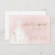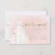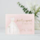 Elegante RSVP-Karten sind mit weißem Hochzeitskleid in Aquarellfarben und glänzenden Imitaten mit goldenen Glitzer-Details auf einem rot-rosa Hintergrund versehen.