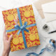 Rot und Gold stilisierte Orangen und Blüten Geschenkpapier