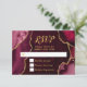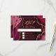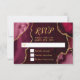 Machen Sie mit dieser bordeauxroten und goldenen Achat-Marmor-RSVP-Karte einen **kühnen und eleganten** ersten Eindruck, der reiche Juwelentöne, organische Steintexturen und schimmernde Goldakzente aufweist, perfekt für Herbst- und Winterfeiern. Die reichen Wein- und Kranichfarbtöne, gepaart mit metallischen Gold-Details, schaffen einen dramatischen, aber raffinierten Look, ideal für eine Hochzeits-RSVP, Geburtstags-RSVP oder Sweet-Sixteen-RSVP mit einem formellen, modernen oder glamourösen Ästhetik. Inspiriert von natürlichen Achat- und Geoden-Mustern, koordiniert dieses luxuriöse Design perfekt mit hochklassigen saisonalen Veranstaltungen und ist vollständig anpassbar, um Ihre Details zu ergänzen, und fügt zeitlose Sophistikation zu Herbst- und Winterfeiern hinzu.