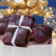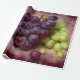 Cluster aus roten und grünen Trauben. Tropfen Wasser auf die Beeren. Texturierte Fotografie, grün und lila Farben. Drucke und Geschenke für Spaß und gute Laune. Papier für jeden wackeln.
