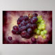 Cluster aus roten und grünen Trauben. Tropfen Wasser auf die Beeren. Texturierte Fotografie, grün und lila Farben. Drucke und Geschenke für Spaß und gute Laune.