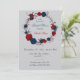 elegante rote und marineblaue Blumen botanischer Kranz auf grauem Hintergrund Brautdusche Einladung