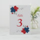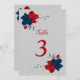 Rot- und Marineblumen mit grauem Blätter Tischnummer-Karte Die Glitzer-Details werden simuliert