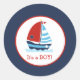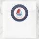 Niedliches Segelbootdesign. Dieser niedliche Rundaufkleber ist auf Ihre eigene Textzeile abgestimmt.
