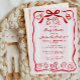 Whimsikale rote und rosa Babydusche mit spielerischen Doodle-Illustrationen und senkrechten Streifen, perfekt für ein Mädchen-Thema Feiern. Dieses niedliche Design vereint moderne Schreib-Kunst mit klassischen Babyelementen und einem lebendigen, handgezeichnet Rahmen und Bogen mit Babysymbolen wie Flasche, Schnuller, Teddybär und Schaukelpferd. Der rosa Hintergrund kontrastiert wunderschön mit den fett roten Linien und Akzenten, während der lockere, gewellte Rahmen ein lustiges und lässiges Gefühl für fröhliche Ansammlungen schafft. Stilvolle Mischung aus handgeschriebenen Schriftart verleiht dem Layout einen persönlichen und fröhlichen Ton. Diese Babydusche lädt Sie ein, eine Mutter zu feiern, die eine süße, von Hand gezeichnet Ästhetik hat, die mit dem beliebten Doodle-Design-Stil voll im Trend ist. Erhältlich als gedruckte Karten oder als sofortiger digitaler Download.