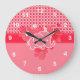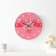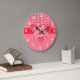 Rot und Rosa Kariert mit Baby Elephant Große Wanduhr