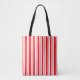 Dieser Crossover-Beutel ist mit roten, weißen und rosa Streifen bedeckt.
