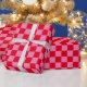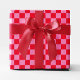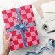 Modernes Schachbrettmuster mit den Farben Ihrer Wahl. Helles rotes und rosa Babyduschpapier. Geschenkpackung mit klassischem Muster.
