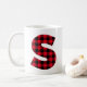 Ein kühner, moderner Schriftart Buchstabe S mit einem traditionellen Lumberjack Buffalo karierten Karo Muster Overlay. Sie können für einen Mitarbeiter ein eigenes Urlaubsgeschenk erstellen, damit er bei der Arbeit seinen eigenen Becher identifizieren kann. Sie können das Gingham Grafik-Image durch Ihr eigenes Foto ersetzen. Passen Sie diese Monogramm-Kaffeetasse mit einem Familiennamen oder einem anderen Text an. Karo der Monogramme nach Buchstaben für andere Initialen.