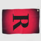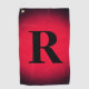 Ein personalisiertes Golfhandtuch in Rot und Schwarz. Fügen Sie Ihre Initialen in einem großen klassischen Schriftart hinzu.