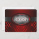 Rot und silber Abschluss Einladung mit hellen und dunkelroten Streifen und einem silbernen Band, das das Jahr des Abschlusses zeigt. Die Rückseite der Karte ist rot mit leicht silberfarbenem Schriftart, damit die Leute die Graduierungsankündigungen ausfüllen können.