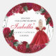 Rot und Silver Floral Quinceanera Runder Aufkleber