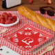 Rot und weiß Bandana-Design mit Monogramm Pappteller