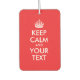 Rot und weiß anpassbares "Behalt Calm and Your Text"-Design. Erstellen Sie Ihren eigenen vertikalen Luftkühler. Ein nettes Geschenk für jeden. Löschen Sie den Text von einer Seite, wenn Sie möchten, und fügen Sie ein Foto hinzu.