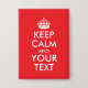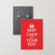 Rot und weiß anpassbares "Behalt Calm and Your Text"-Design. Erstellen Sie Ihre eigene, benutzerdefinierte Schaltfläche für das vertikale Rechteck. Ein nettes Geschenk für jeden.