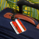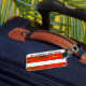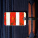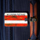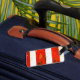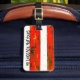 Tag mit rotem und weißem Gepäck. Mein Gepäck Nicht dein Anhänger, um Ihr Gepäck leichter zu identifizieren. Unterschiedliches Bild auf beiden Seiten. Sie können den Text entfernen oder ändern, um was Sie wollen. Text kann in verschiedene Größen, Stile oder Farben geändert werden. Design kann auf andere Elemente übertragen werden.