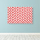 Dieses geometrische Muster in Rot und Weiß ist ein originelles Dekorationsdesign. Weiße Mäander drehen um rote Diamanten mit weißen Diamanten. Rote Zickzackgassen sorgen für eine feine Trennung zwischen den gewundenen Pfaden. Digitales 9000 x 6000 Pixel Bild. Copyright ©2013 Claire E. Skinner, Alle Rechte vorbehalten.