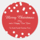 Roter Hintergrund und weiße Konfetti Weihnachtsaufkleber.