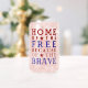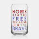 Dieses auffallende patriotische Trinkglas zeigt ein lebendiges Design in kräftigen Rot-, Weiß- und Blautönen. Es ist mit dem inspirierenden Zitat "Home of the Free because of the Brave" verziert, das in wunderschön gestalteter dekorativer Typografie präsentiert wird und einen Hauch von Eleganz verleiht. Perfekt zum Anstoßen während Feierlichkeiten Ihrer Liebe zum Land, ist dieses Trinkglas ein exzellentes Accessoire für den Unabhängigkeitstag und die Feiern zum 4. Juli.