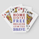 Dieses auffallende patriotische Kartenspiel verfügt über ein lebendiges Design in kräftigen Rot-, Weiß- und Blautönen. Es enthält das inspirierende Zitat "Home of the Free, Because of the Brave", präsentiert in wunderschön gestalteter dekorativer Typografie, die einen eleganten Touch hinzufügt. Dieses Deck ist perfekt, um es zu verschenken oder um Kartenspiele während Ihrer 4.-Juli-Feier zu spielen.