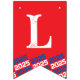Abschluss-Jagdfahne mit einem Banner mit wiederholter Klassenjahrespolation in der Klasse Rot, Weiß und Blau des 202X