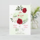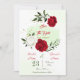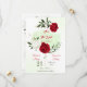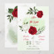 Romantische Rot-Weiß-Blume und grüne Blätter Save the Date Einladung Die Details des Glitzer werden simuliert