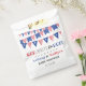 Feiern Sie stilvoll mit diesen lustigen und sehr trendigen 4. Juli Baby Dusche Gefallen Taschen. Dieses Design lässt sich einfach mit Ihrer speziellen Veranstaltungssprache personalisieren und Ihre Gäste werden begeistert sein, wenn sie diese fantastischen Gunst-Taschen erhalten. Matching-Elemente finden Sie in der Auflistung.