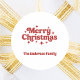 Ein weißer Hintergrund, roter Text. Frohe Weihnachten ist mit einem Retro-Schriftart im Stil der 70er Jahre geschrieben. Personalisieren und fügen Sie ein Jahr und Ihren Familiennamen hinzu.