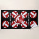 Das Volleyballteam der Girls farbt personalisiertes Badetuch mit roten und weißen stylisierten Volleybälle, die in einem Spiegelmuster angeordnet sind, in dem es steht: "I Liebe volleyball" - ihr Name und die Jersey-Nummer sind individuell einstellbar - von katz_d_zynes