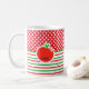 Rot-Weiß-Polka mit rot-grünen Linien. niedlicher Apfel in der Mitte. Um eine niedliche Touch hinzuzufügen. Dieses Design ist vollständig anpassbar. Sie können alle Bilder und Farben ändern.