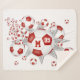 Die niedliche Sherpa-Fleecedecke mit dem Fußballthema "Explosion" der Fußbälle mit roten und weißen Tafeln in verschiedenen Größen und einer grauen Sternform mit weißen Polka-Punkten - angepasst an die Monogramm- und Jerseynummer des Spielers - katz_d_zynes