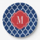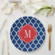 Individuell bedruckte Teller mit einem niedlichen marokkanischen Preppy-Muster und einem eigenen Monogramm oder einem anderen Text in einem stilvollen Quartrefolienrahmen. Klicken Sie auf Anpassen, um Schriftart und Farben zu ändern oder eigene Bilder hinzuzufügen, um ein einzigartiges Design zu erstellen. Ideal für Ihr nächstes Familienpicknick oder das Grill-Party vom 4. Juli!