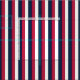 Ein gestreifter Druck mit Rot-Weiß und Blau, der in den gleichen Farbtönen wie die offizielle US-Fahne und ein etwas altes Vintages Aussehen gehalten ist.
