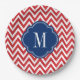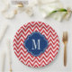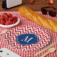 Rot-Weiß-Zickzack Monogramm Pappteller