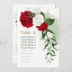 elegante, individuell anpassbare Sitzkarte Tischnummer rot-weiße Blume mit einigen grünen Blätter und Gold Glitzer Tischnummer Karte